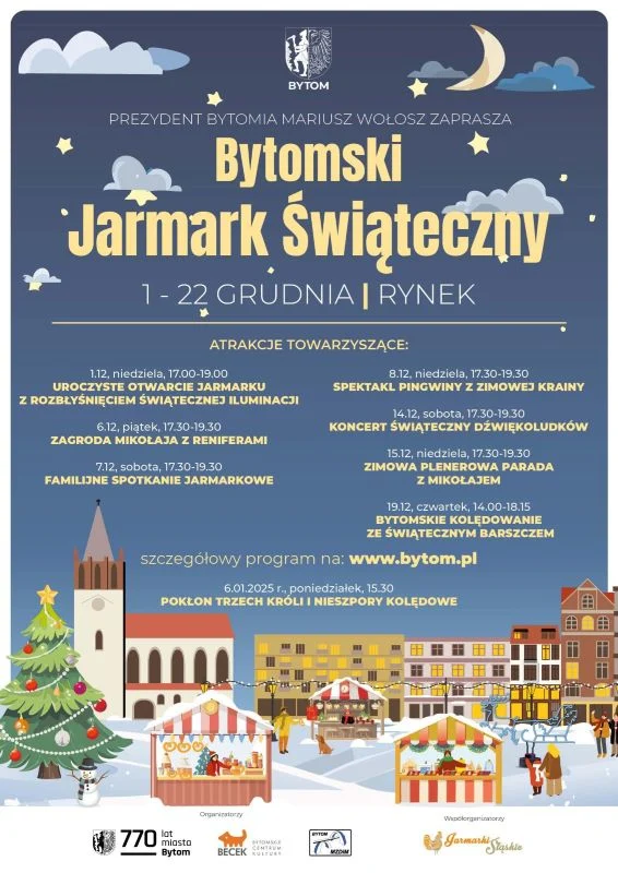 – Bytomski Jarmark Świąteczny zwieńczy obchody 770-lecia naszego miasta, dlatego zależy nam, aby to wydarzenie było wyjątkowe, tak jak wyjątkowy jest okrągły jubileusz lokacji miasta – mówi prezydent Mariusz Wołosz.