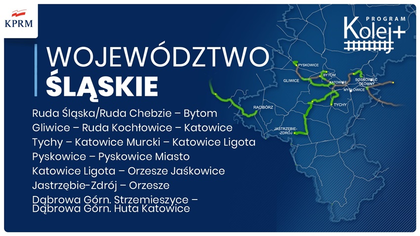 Sześć projektów liniowych z Górnośląsko-Zagłębiowskiej Metropolii pozyskało dofinansowanie z rządowego programu “Kolej Plus”.