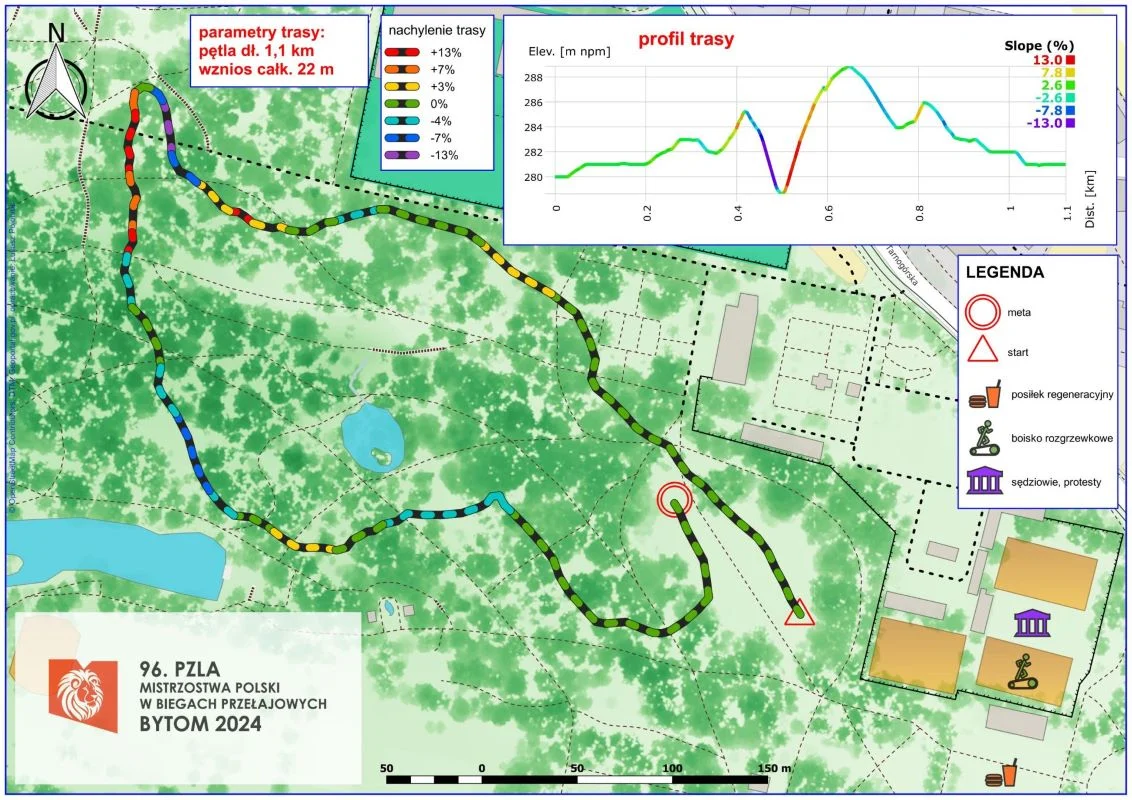 Trasa, po której będą rywalizować biegacze, została specjalnie przygotowana na tegoroczne Mistrzostwa Polski w Biegach Przełajowych. Pętla ma długość około 1,1 km, a na trasie biegu uwzględniono nie tylko odpowiednie jej nachylenie, ale również tzw. całkowity wznios informacja o tym, jak wysoko wspiąłeś się w trakcie biegu, a który podczas odbywających się w Bytomiu mistrzostw będzie wynosić 22 m.