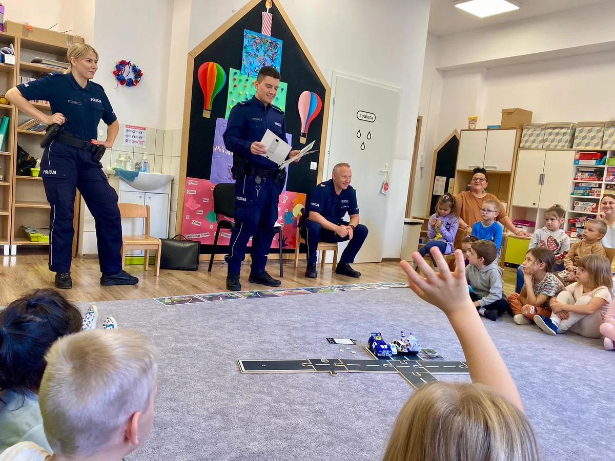 Bytom: Policjanci uczą przedszkolaków bezpieczeństwa – spotkanie w przedszkolu Tika