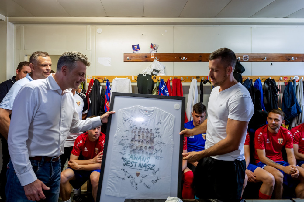 Przed sobotnim meczem prezydenta miasta, Mariusz Wołosz odwiedził piłkarzy w szatni. Wyraził radość z awansu bytomskiego klubu do 2. ligi i pogratulował piłkarzom. Życzył im również podobnej kondycji i sukcesów w przyszłym sezonie.