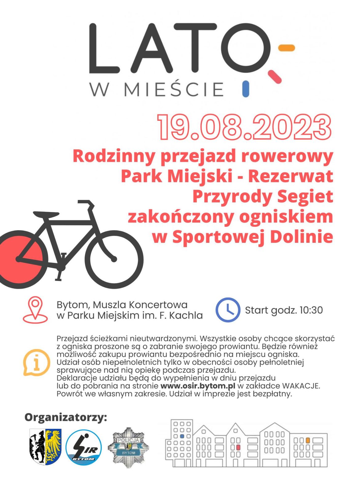 Już w najbliższą sobotę, 19 sierpnia OSiR Bytom wraz z Komendą Miejską Policji w Bytomiu zaprasza miłośników dwóch kółek na Rodzinny Przejazd Rowerowy na trasie Park Miejski – Rezerwat Przyrody Segiet w ramach akcji „Lato w mieście”.
