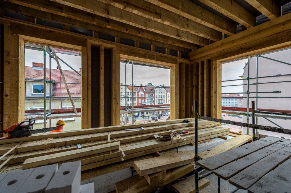 – Konstrukcja nadbudowy wykonana jest z drewna. Będzie wykończona tytanowo-cynkową obróbką blacharską, która z czasem będzie się pokrywać się patyną – mówi Dawid Garbacki.