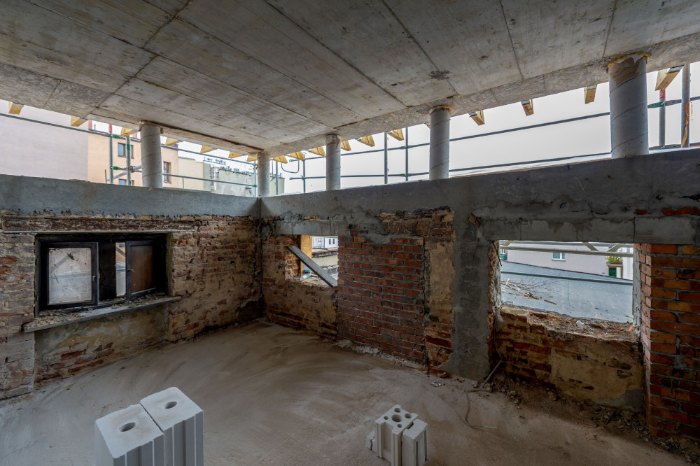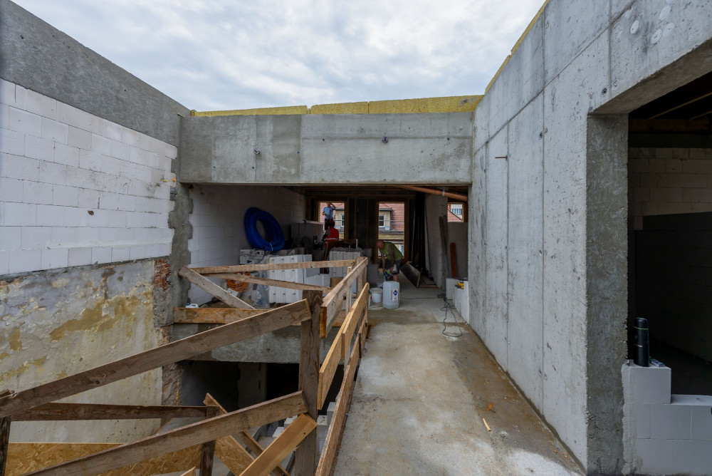 Zakończyły się prace konstrukcyjne, a cała bryła budynku została „spięta” żelbetową konstrukcją. Ponieważ budynek był w złym stanie technicznym, przebieg prac nadzorowało aż trzech konstruktorów budowlanych.