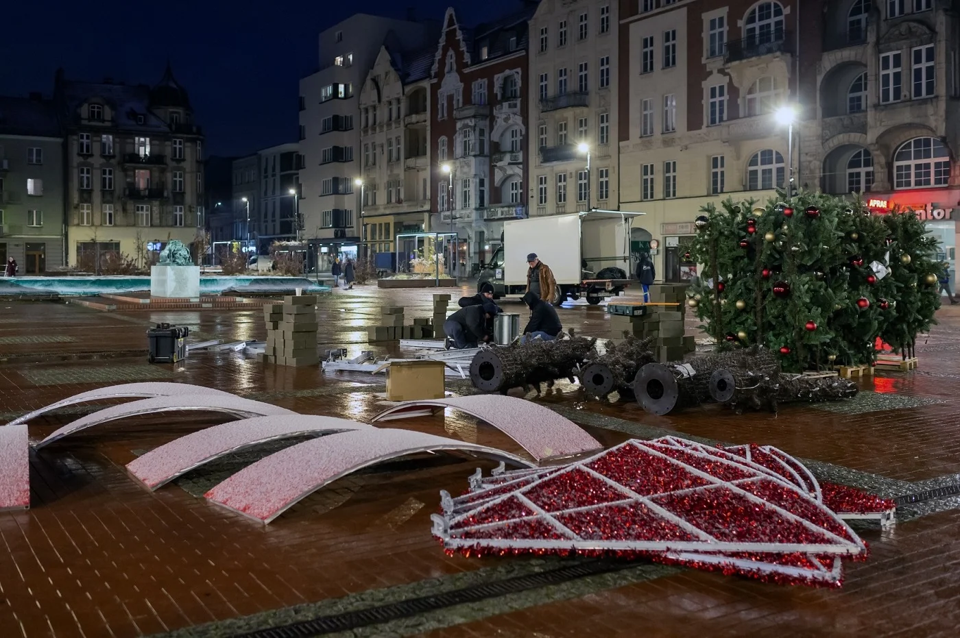 Za oknem prawdziwie zimowa aura, a miasto rozpoczyna montaż świątecznych dekoracji. W sobotę, 25 listopada, na bytomskim Rynku pojawiły się już ekipy instalujące choinkę, a w kolejnych dniach przybędzie kolejnych dekoracji. Uruchomienie iluminacji zaplanowane jest na 1 grudnia.