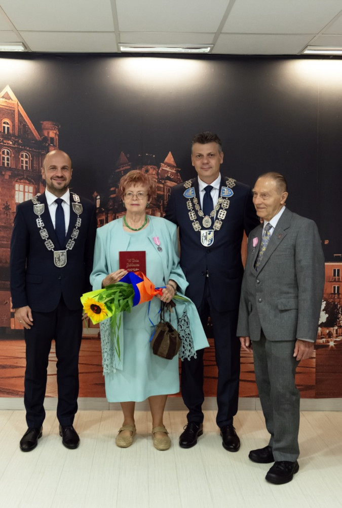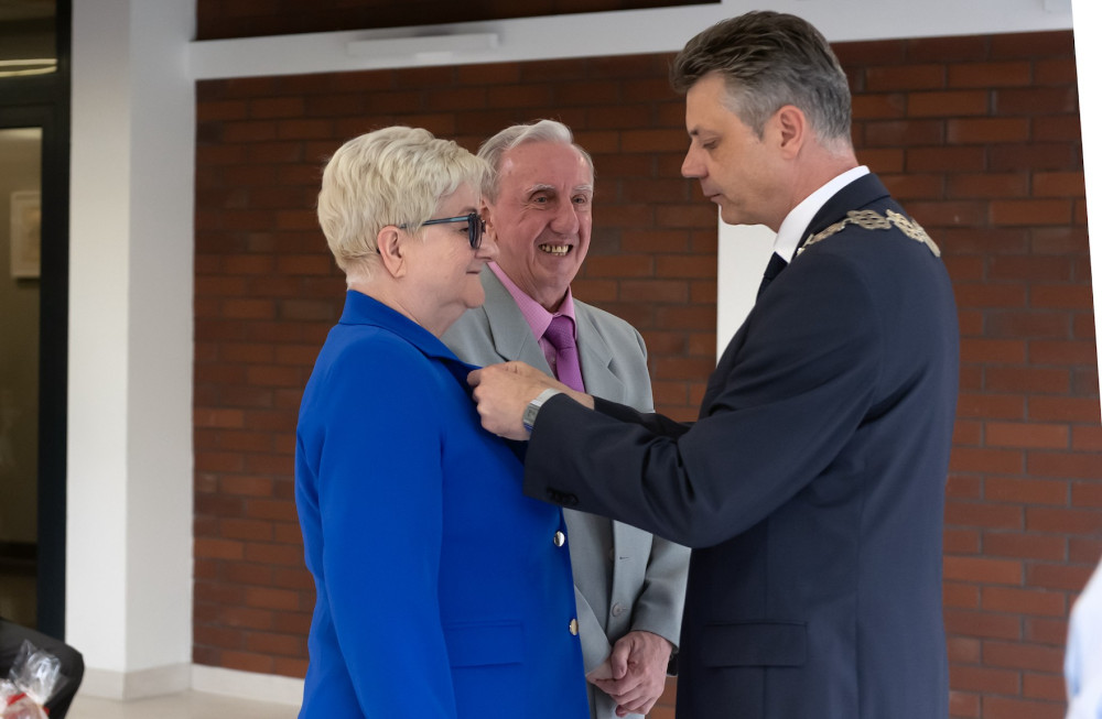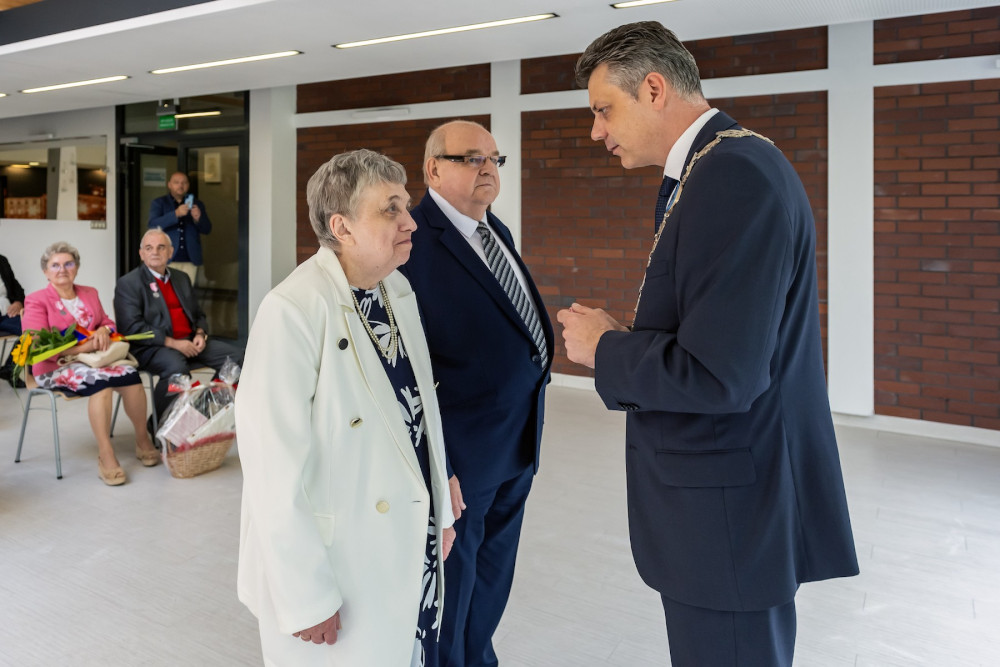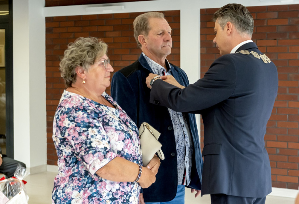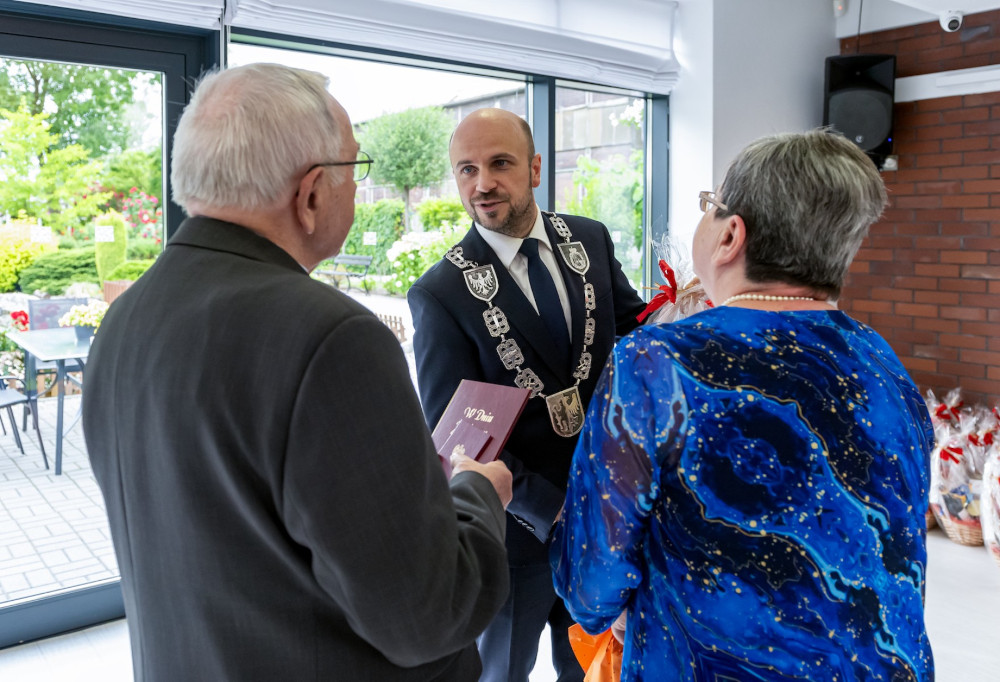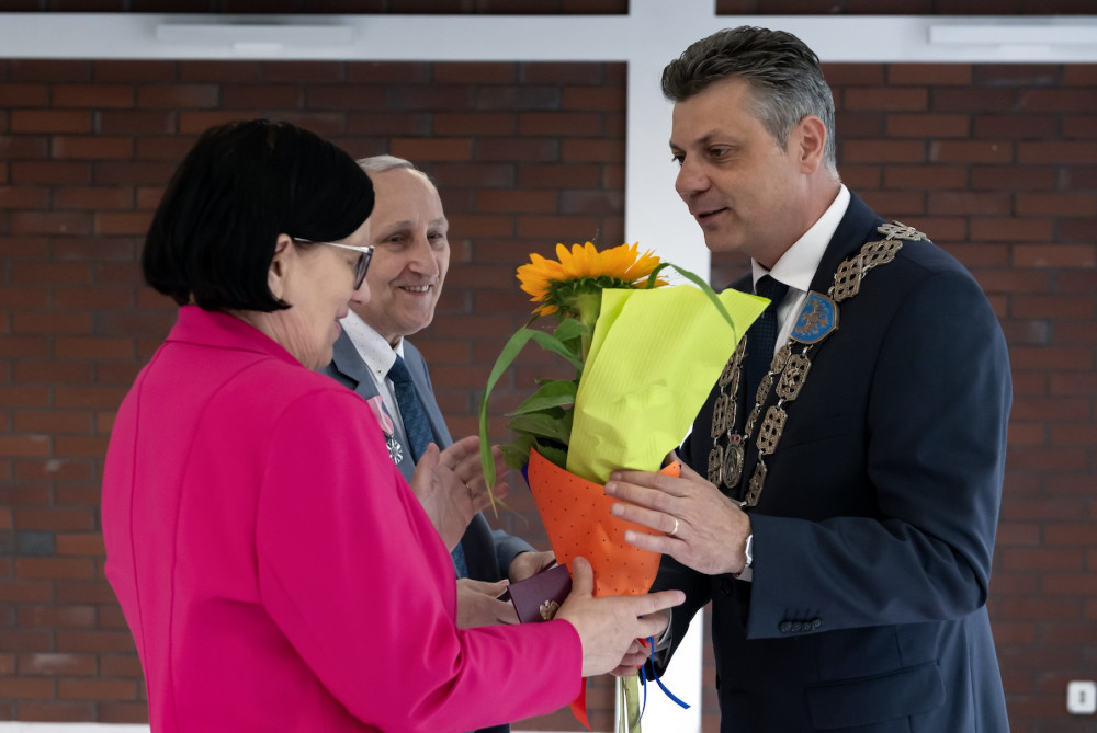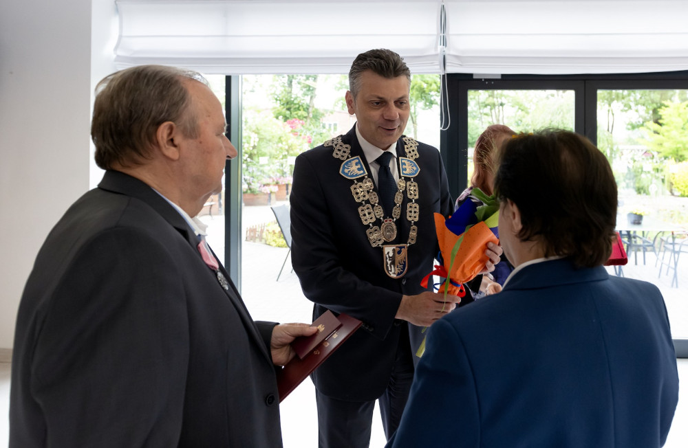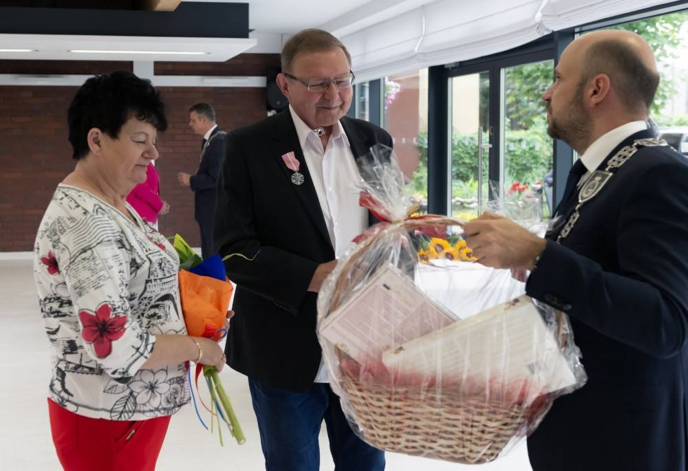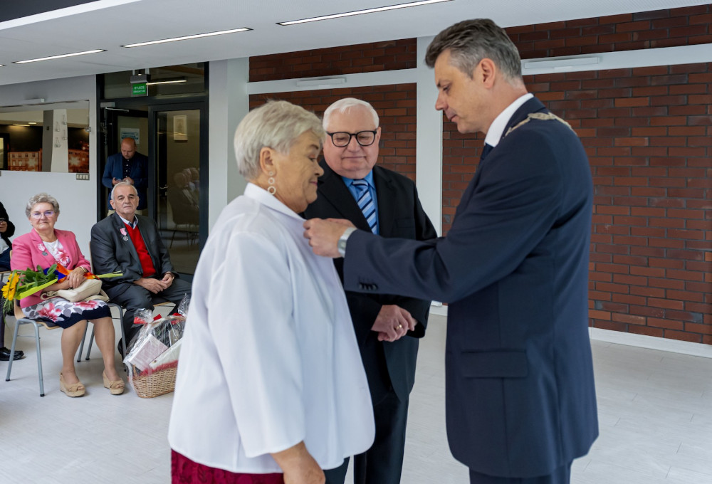 Medal za długoletnie pożycie małżeńskie odebrali także państwo Jadwiga i Jerzy Stelmachowie, których prezydent Mariusz Wołosz odwiedził z życzeniami i kwiatami w ich domu.