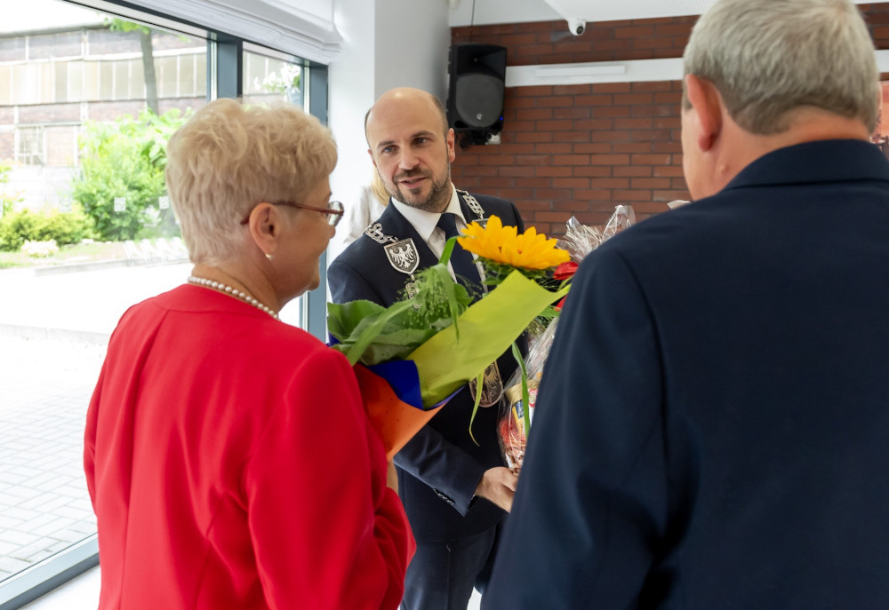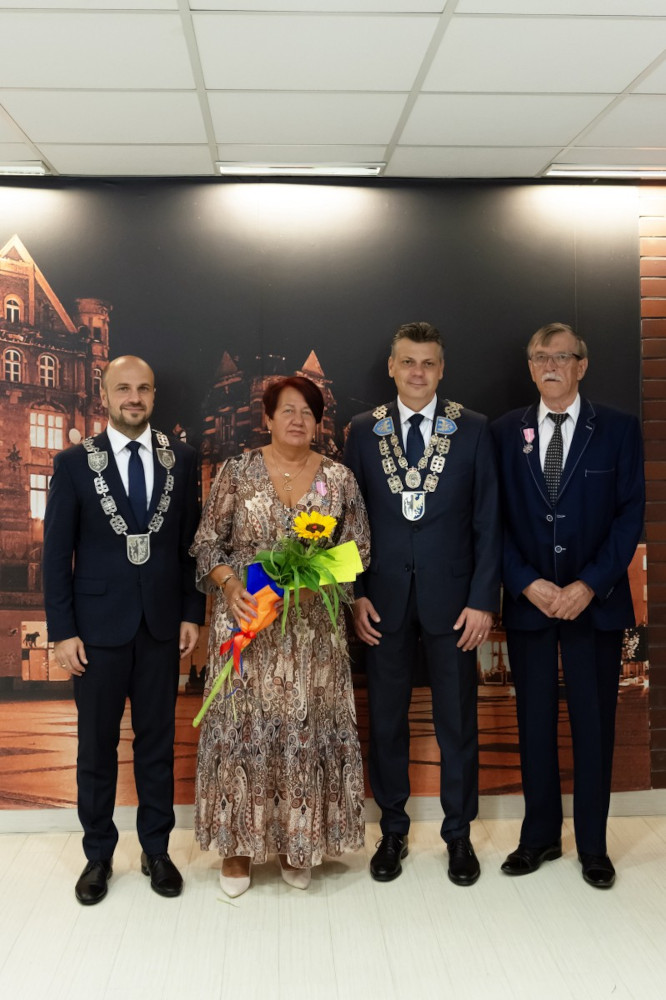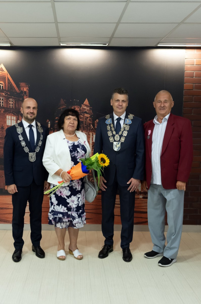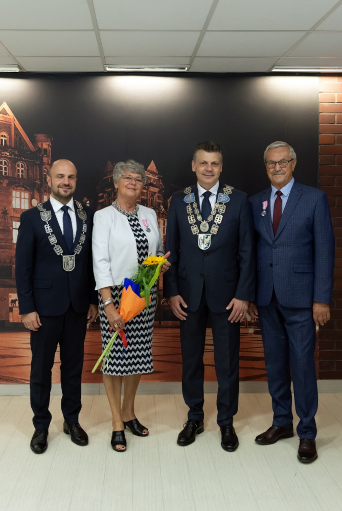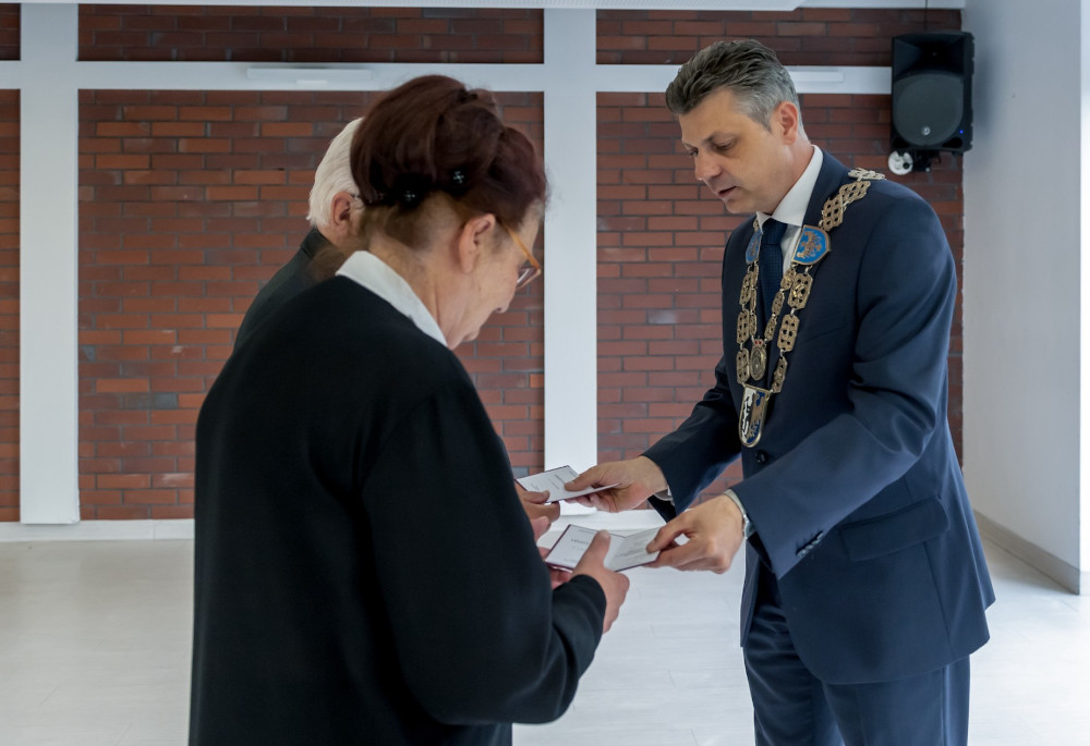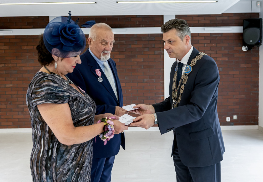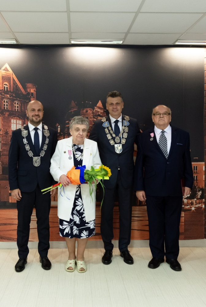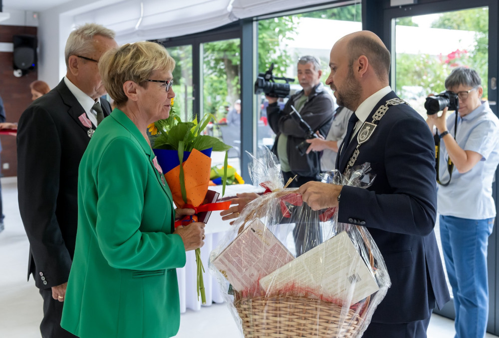 Medal za długoletnie pożycie małżeńskie odebrali także państwo Jadwiga i Jerzy Stelmachowie, których prezydent Mariusz Wołosz odwiedził z życzeniami i kwiatami w ich domu.
