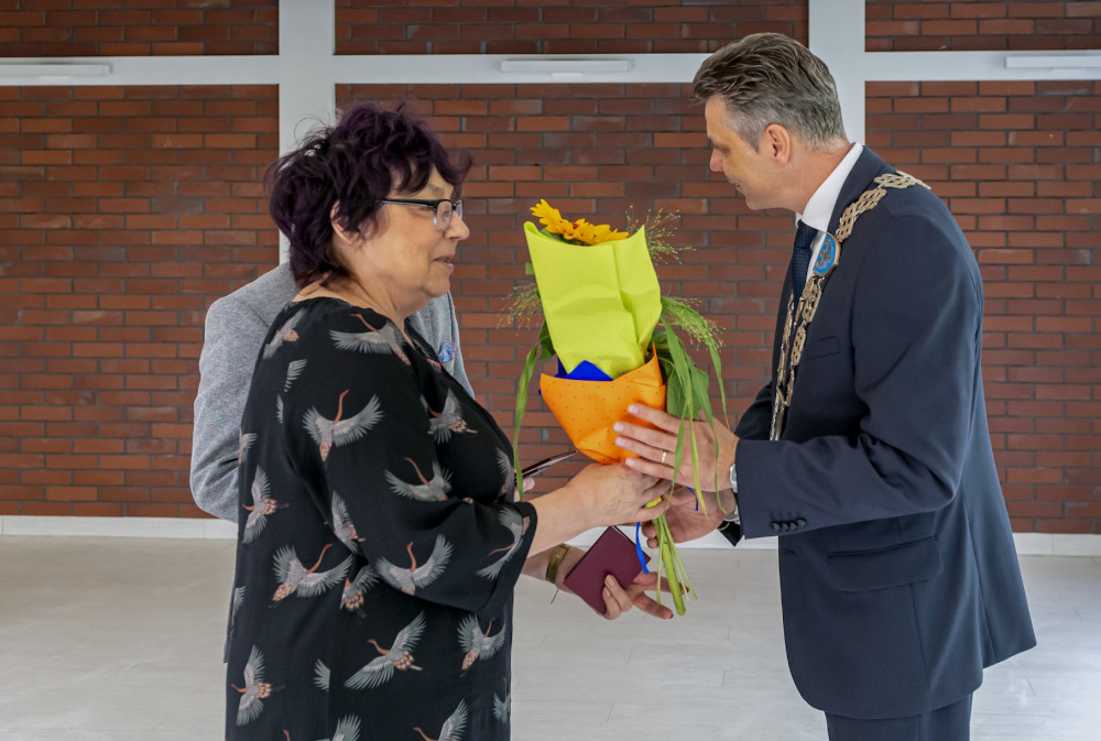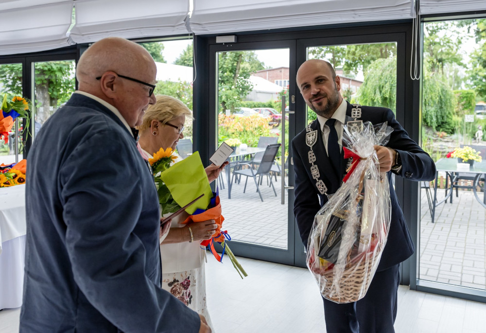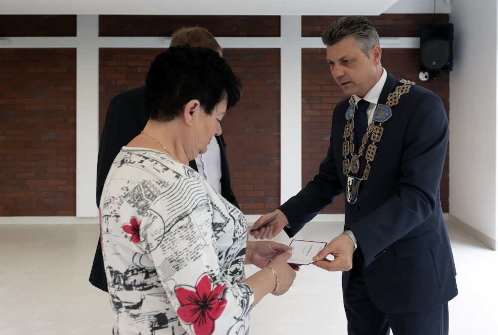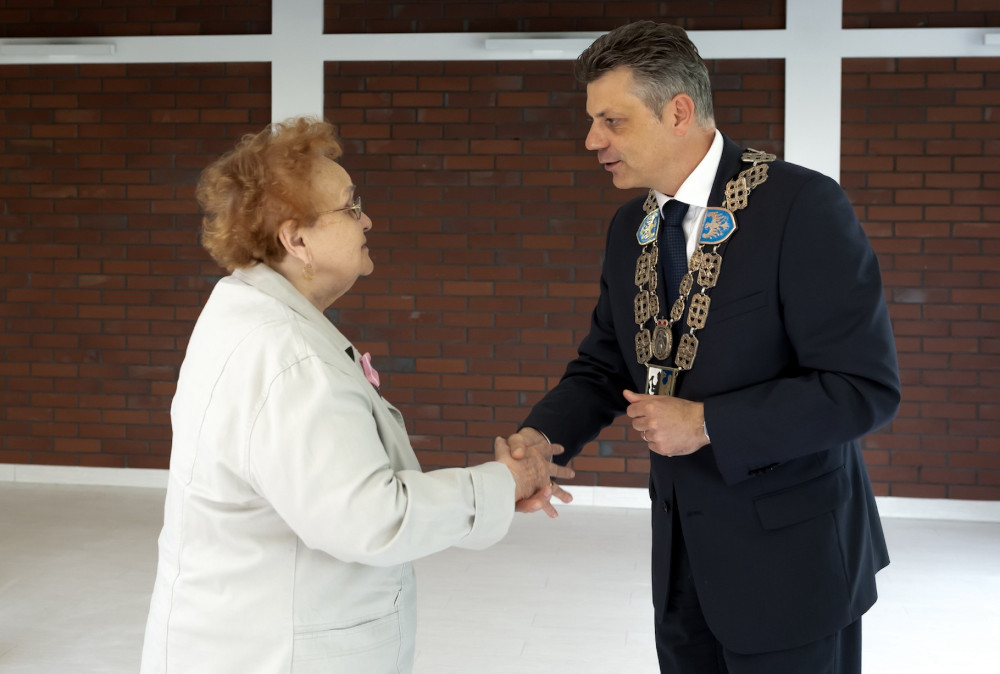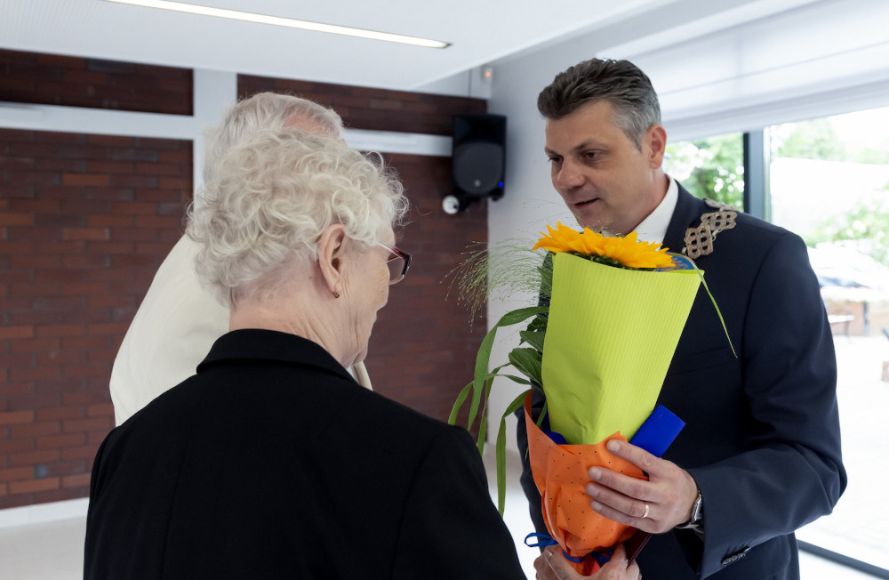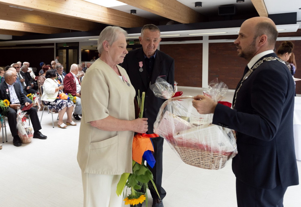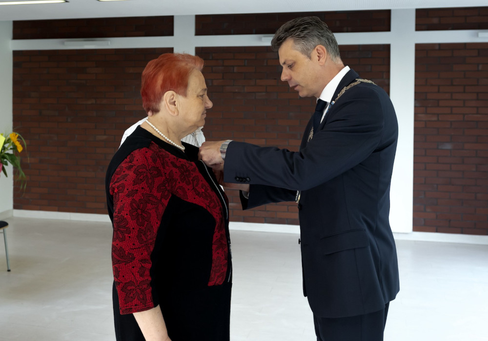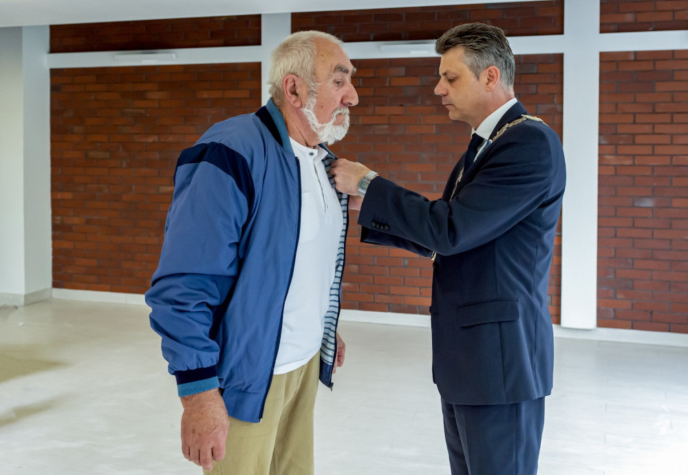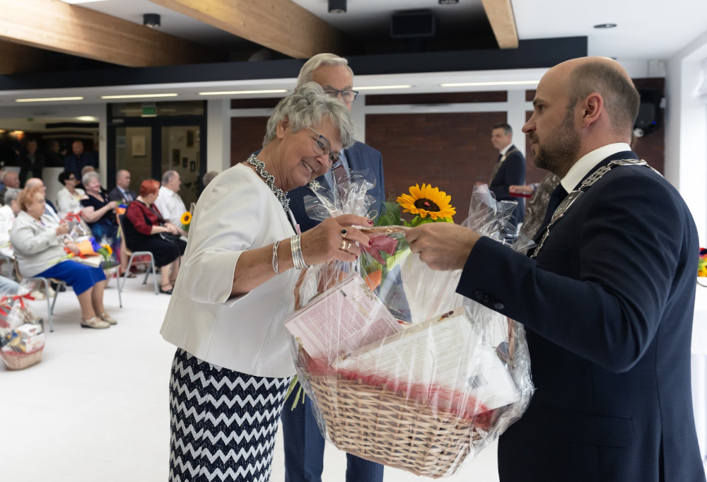 Medal za długoletnie pożycie małżeńskie odebrali także państwo Jadwiga i Jerzy Stelmachowie, których prezydent Mariusz Wołosz odwiedził z życzeniami i kwiatami w ich domu.