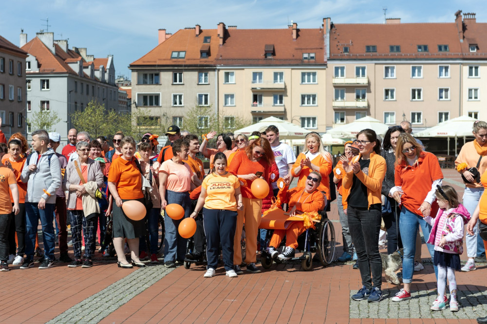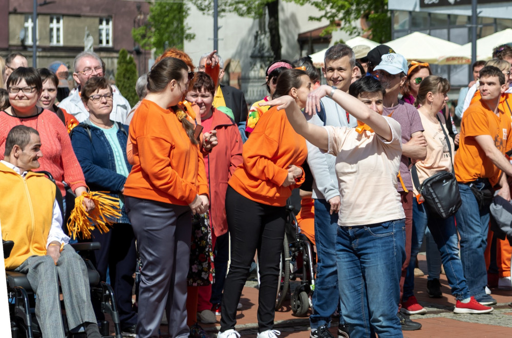Kolor pomarańczowy, będący znakiem solidarności z osobami niepełnosprawnymi intelektualnie, był w piątek kolorem dominującym na bytomskim Rynku, gdzie zatańczyli podopieczni OREW-u, ich rodzice oraz kadra ośrodka, a także inne bytomskie placówki oświatowe i samopomocowe oraz przedstawiciele władz samorządowych.