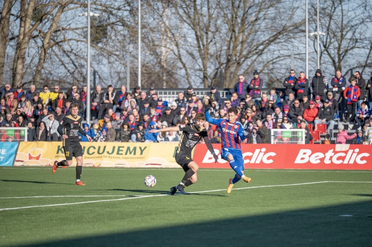 W 22. kolejce Betclic II ligi niebiesko-czerwoni pewnie pokonują rywala na swoim boisku zatrzymując komplet punktów w Bytomiu. Niedzielne spotkanie z GKS Jastrzębiem zakończyło się wynikiem 2:0.