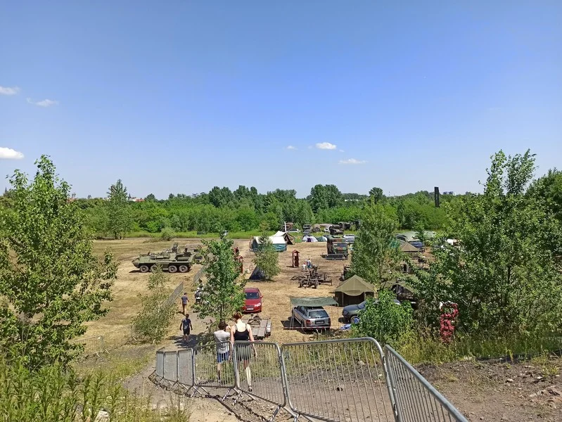 Pogoda dopisała, a na terenie znajdującym się wokół słynnego szybu Krystyna pojawiły się prawdziwe tłumy. Można tu zobaczyć nie tylko zabytkowe pojazdy wojskowe, ale zaopatrzyć się także w militarne ubrania i gadżety, zarówno oferowane przez różne stowarzyszenia, jak i z Agencji Mienia Wojskowego. Odwiedzający mają okazję do przejażdżki sprzętem wojskowym. Na spragnionych czeka strefa gastronomiczna, a ochłody można zaznać pod kurtyną wodną.