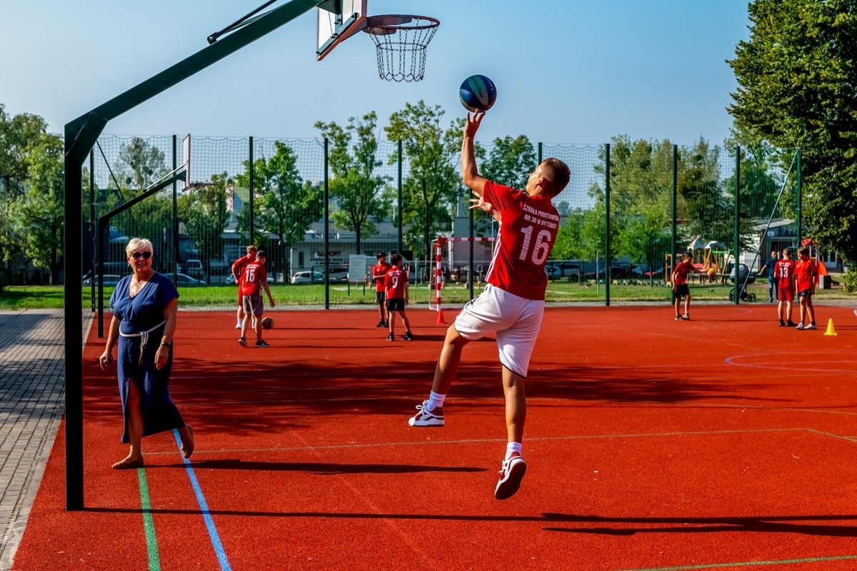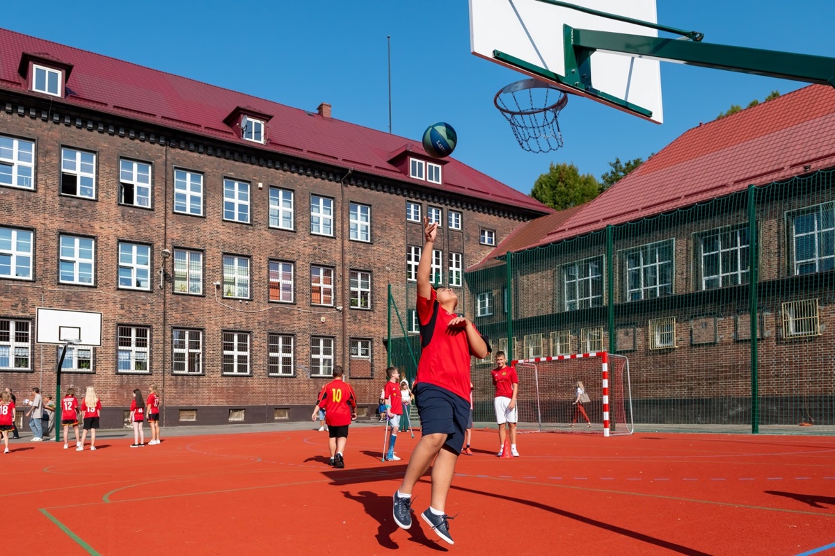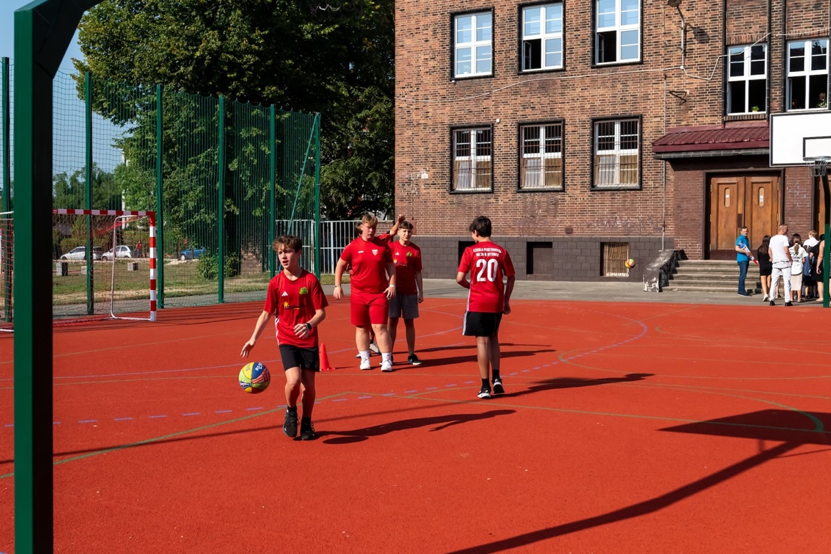 Uroczystemu rozpoczęciu nowego roku szkolnego towarzyszyło również otwarcie po remoncie szkolnego boiska. Prace zostały przeprowadzone w ramach Bytomskiego Budżetu Obywatelskiego i obejmowały retoping, czyli remont płyty boiska wielofunkcyjnego z przeznaczeniem do gry w piłkę ręczną, koszykówkę oraz zakup i montaż nowych bramek do piłki ręcznej, renowację koszy do koszykówki i piłkochwytów oraz wymianę części piłkochwytów na nowe.