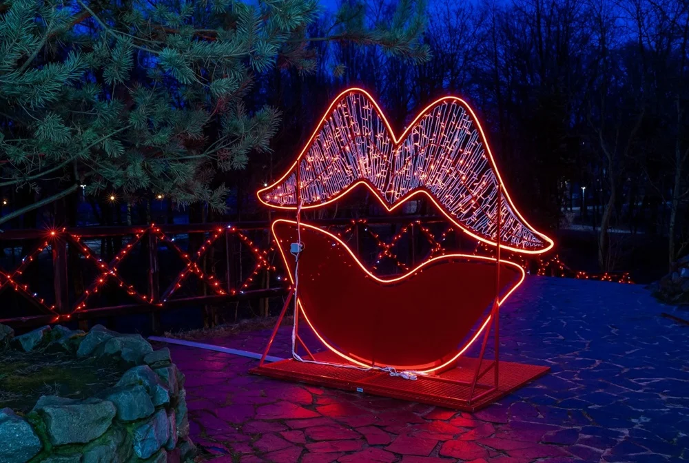 Wśród okolicznościowych dekoracji nie zabrakło też neonu z napisem Góra Miłości oraz wiszącej iluminacji w kształcie serca na latarni. Na szczycie wzniesienia pojawiła się też „grająca ławeczka – całus” idealna do robienia walentynkowych ujęć.