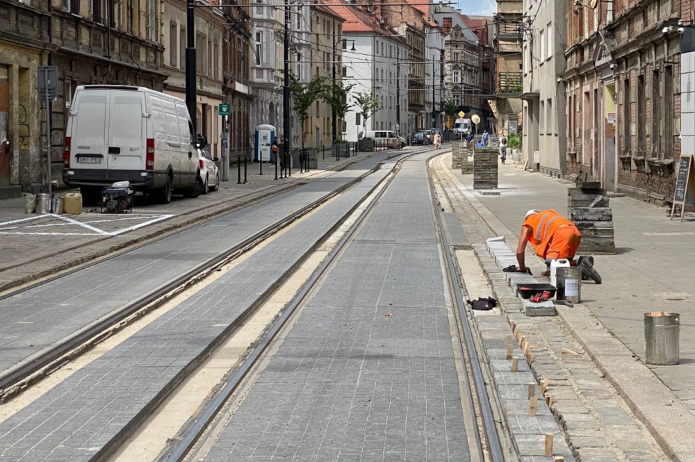 Teraz wykonawca w ramach gwarancji ponownie wykonuje naprawę uszkodzonych i odspojonych płyt granitowych, jednak na czas robót całkowicie wstrzymany jest ruch pojazdów oprócz możliwości przejazdu tramwajów na remontowanych odcinkach ulicy Katowickiej.