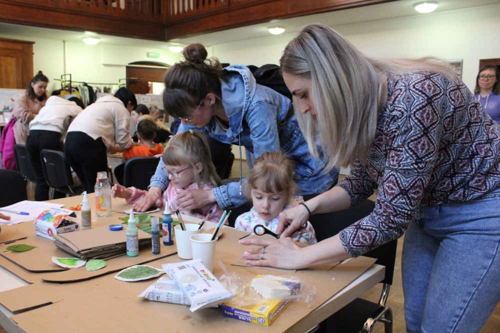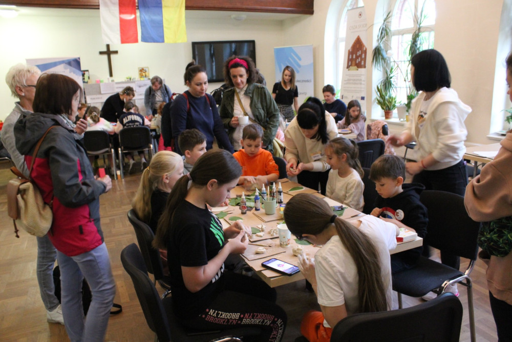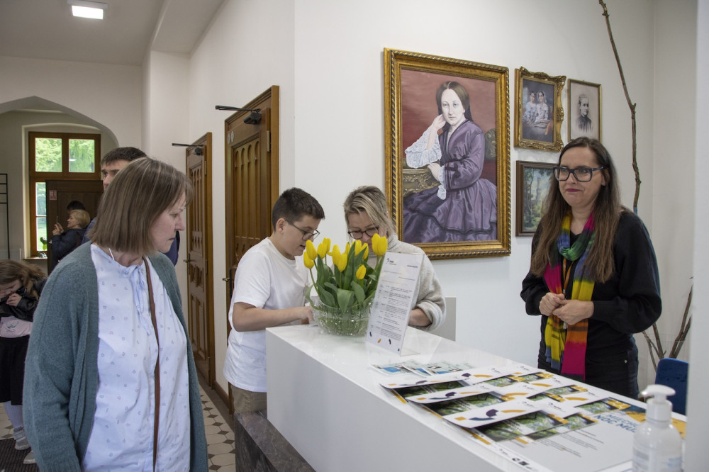 Zauroczeni gościnnością i dobrą energią pałacu zwiedzający, zaglądali w jego zakamarki – często nie pierwszy już raz, lecz z takim samym zainteresowaniem i entuzjazmem. Na dzieci czekały m.in. warsztaty plastyczne, z kolei na nieco starszych wystawa Sławomira Kaczora – twórcy autorskich projektów obiektów sakralnych wykonanych z brystolu.