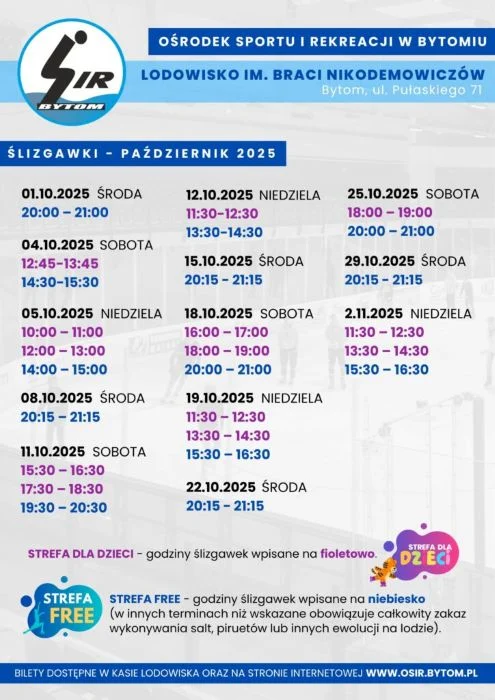 Bilety można zakupić bezpośrednio w kasie lodowiska lub poprzez System Sprzedaży on-line