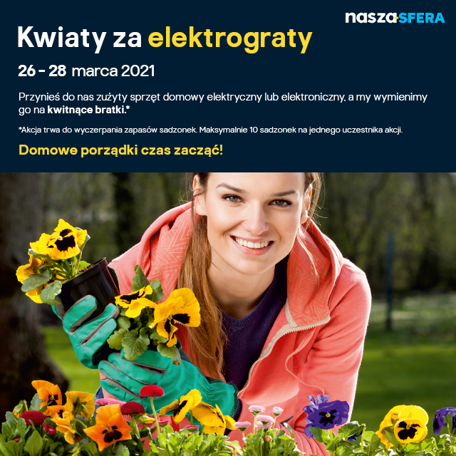 Masz zużyty sprzęt elektroniczny lub elektryczny? Zalega Ci stary monitor, komputer, telefon, lodówka, czy pralka? Castorama organizuje akcję „Kwiaty za Elektrograty”, czyli zbiórkę elektrośmieci w dniach 26-28 marca. W zamian za zużyty sprzęt dostaniesz piękne bratki.