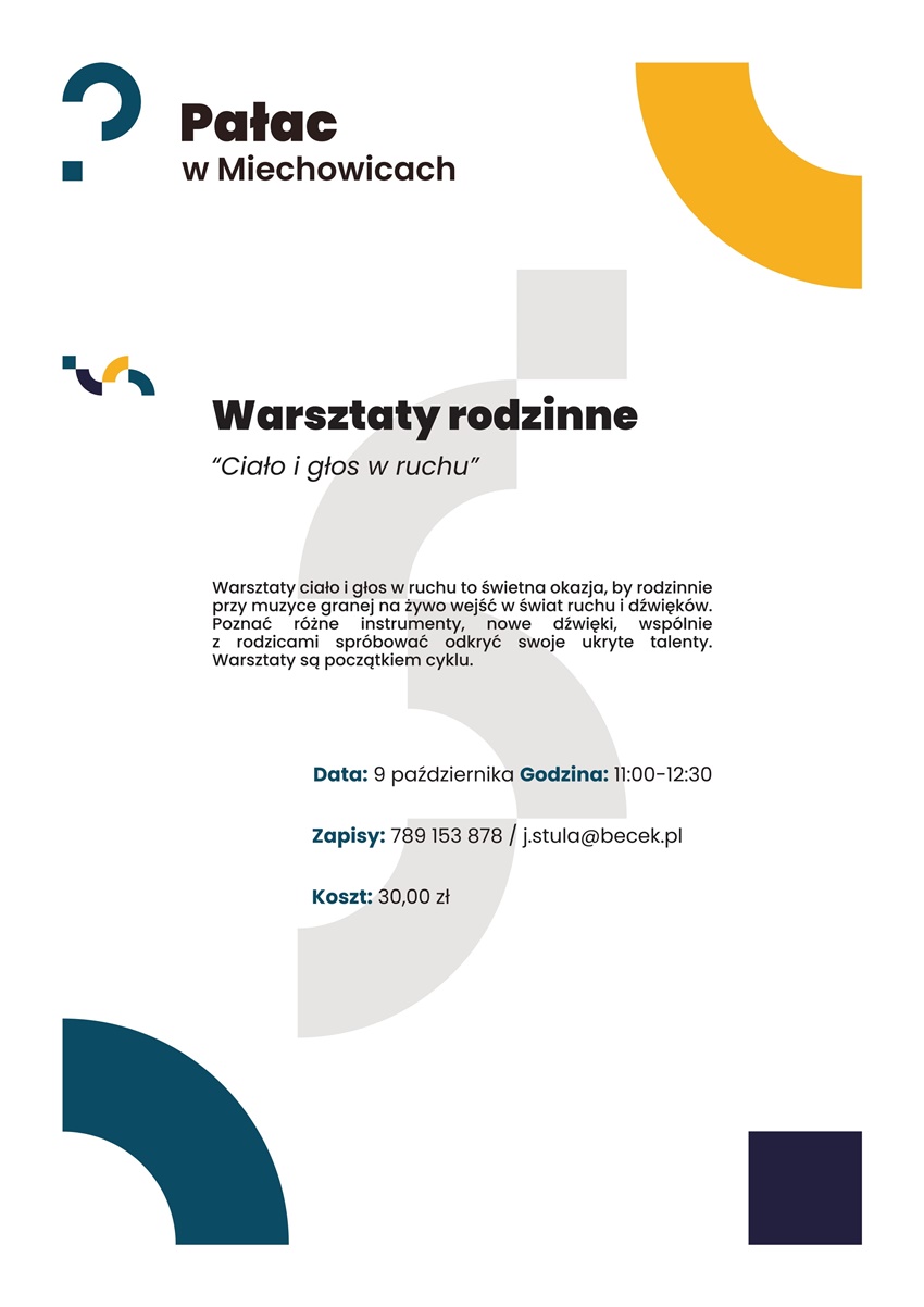 Warsztaty rodzinne: “Ciało i głos w ruchu” to nowy cykl zajęć, który będzie odbywał się w Pałacu w Miechowicach.