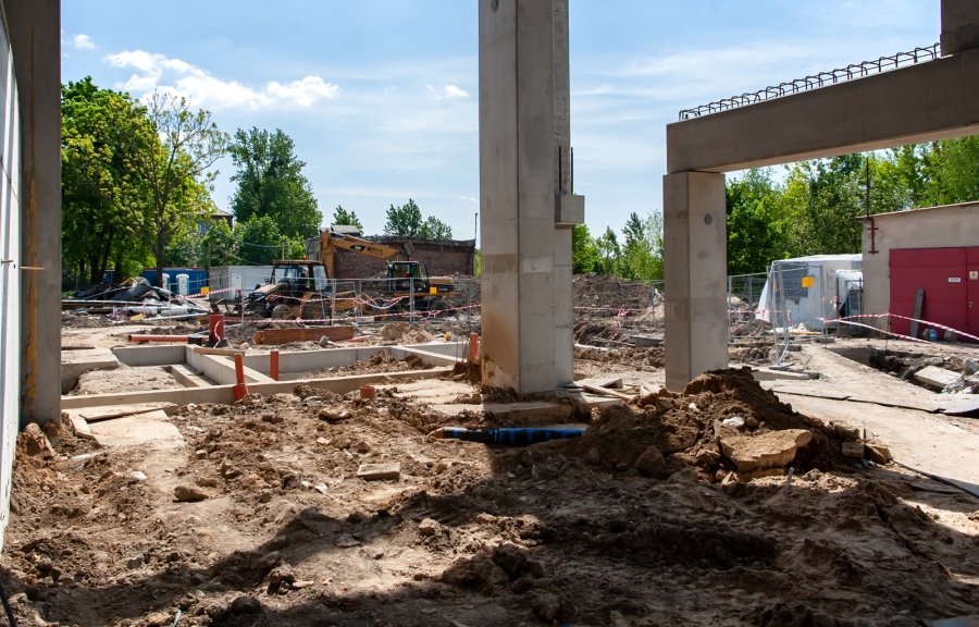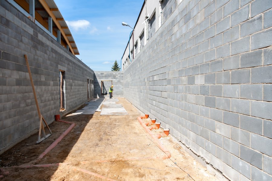 Wykonawca rozpoczął już prace murarskie w zachodniej części obiektu, kanalizację deszczową i sanitarną po południowej stronie, a także roboty związane z montażem wentylacji. W czerwcu ruszą także prace z układem drogowym po wschodniej stronie obiektu.
