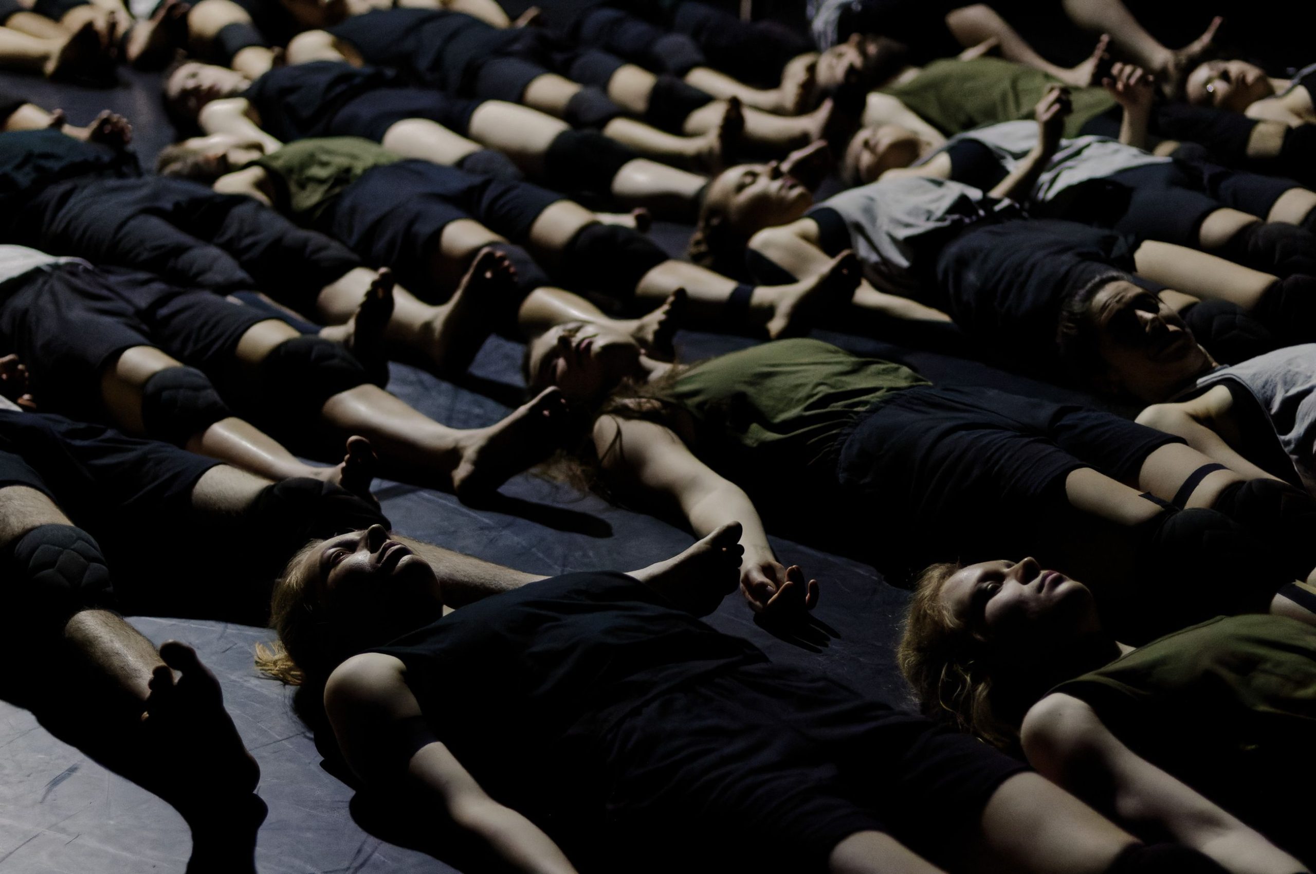 – Spektakl na tak dużą liczbę wykonawców i o takiej tematyce wymaga bardzo specyficznego podejścia do pracy i strategii choreograficznych. Trudno jest stworzyć ruch, który zostanie wykonany przez 27 wykonawców w absolutnym synchronie w sposób organiczny i wygodny dla wszystkich, który dodatkowo jeszcze zadziała na odbiorcę, stworzy mu przestrzeń do indywidualnej interpretacji choreografii, a jednocześnie nakieruje na wybrane tory skojarzeniowe czy myślowe. Z trudności tej wyniknęła obrazowa struktura naszego spektaklu – tancerze tworzą z siebie ruchomą kompozycję, nieustannie zmieniającą się i ewoluującą w kolejne obrazy – wyjaśnia Paweł Urbanowicz, asystent choreografa, absolwent WTT AST, związany z Teatrem Rozbark, Vagabond Physical Collective i Living Space Theatre.