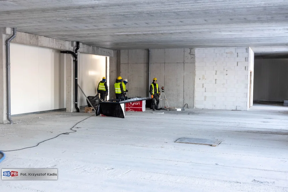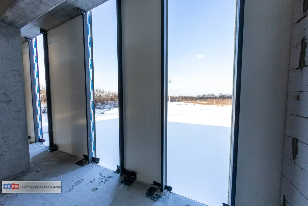 Brygady murarskie zrealizowały około 60 proc. robót związanych z montażem ścian działowych kondygnacji parteru. Wewnątrz budynku klubowego widać już ułożenie i wielkość pomieszczeń szatniowych przeznaczonych dla piłkarzy.