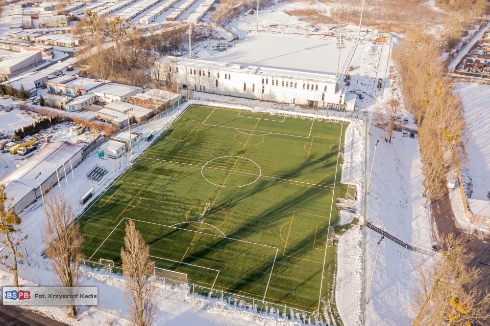 Realizowana przy ul. Piłkarskiej inwestycja obejmuje budowę pełnowymiarowego boiska piłkarskiego, umożliwiającego rozgrywanie meczów, z udziałem ponad 2,2 tys. widzów oraz budowę trzykondygnacyjnego budynku, w którym znajdą się pomieszczenia szatniowe, minimuzeum Polonii, kawiarenka z tarasem dla rodziców kilkuset młodych adeptów piłki nożnej oraz miejsce dla nowo powołanej sekcji e-sportu.