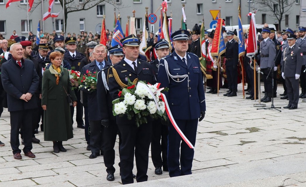 W dzisiejszych obchodach Narodowego Święta Niepodległości organizowanych w naszym mieście uczestniczył Zastępca Komendanta Miejskiego Policji w Bytomiu młodszy inspektor Damian Radziejowski. Uroczystość tradycyjnie rozpoczęła się od złożenia kwiatów pod tablicą ”Solidarności” przy ulicy Pułaskiego.
