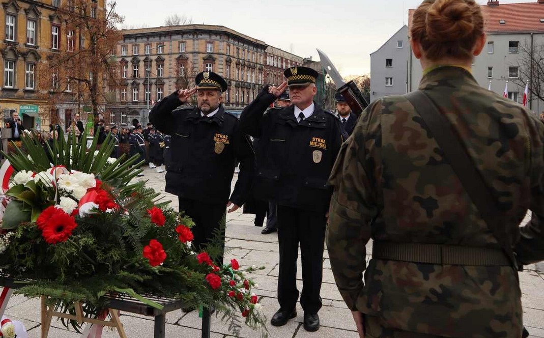 Funkcjonariusze KMP Bytom podczas uroczystości Święta Niepodległości