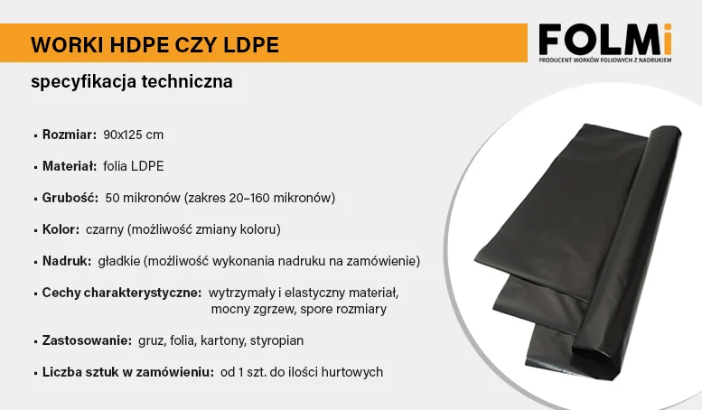 Wiesz już, jak i gdzie zamówić worki na gruz, dlaczego zawsze warto mieć przy sobie kilka sztuk, a także ile kosztuje worek na gruz. Niech to pokazuje, że worki foliowe to nie tylko te – najczęściej przychodzące na myśl – worki na odpady komunalne. Nadchodzi pełny sezon zimowy – w najbliższym czasie mogą się przydać także worki na różne rodzaje opału czy też nowe worki na opony. Jeśli potrzebujesz zaopatrzyć się w wytrzymałe worki na gruz, innego rodzaju worki lub opakowania foliowe, nie szukaj dłużej. Zapoznaj się z pełną ofertą FOLMI i sprawdź, co mamy do zaproponowania. Czekamy na twoje zgłoszenie!