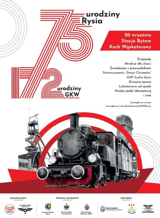 Sobotnia, 20 września impreza na stacji Bytom Karb Wąskotorowy odbędzie się z okazji zarówno 75. urodzin popularnego parowozu „Ryś” oraz 172. rocznicy działalności Górnośląskich Kolei Wąskotorowych. Impreza rozpocznie się od godziny 11:00, a organizatorzy wydarzenia przygotowali nie lada atrakcje, wśród których będą: