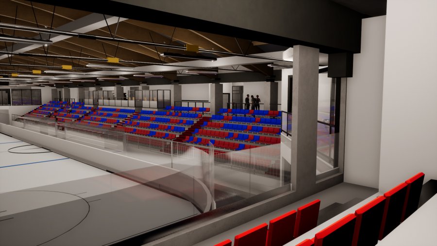 • Krzesełka na trybunach w hali nowego lodowiska będą miały barwy Polonii Bytom – niebiesko-czerwone.