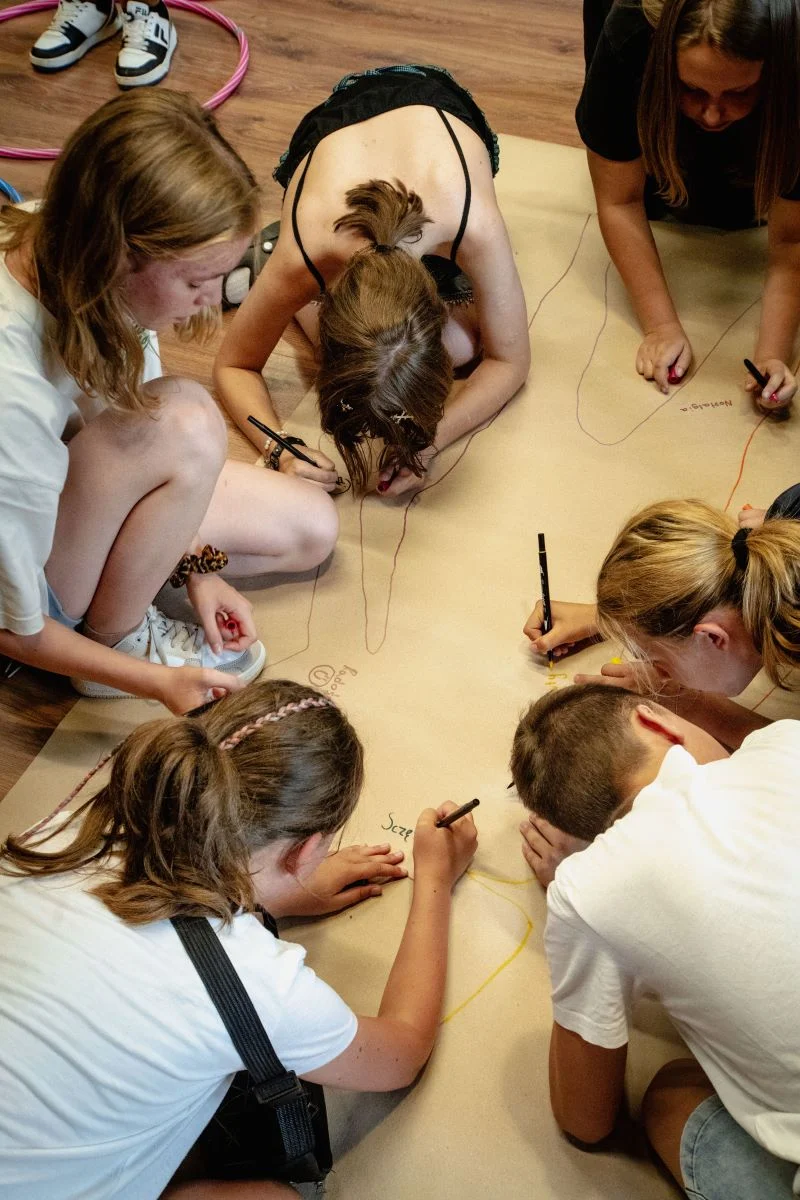 Młodzież uczestnicząca w zajęciach, od dwóch tygodni pracowała nad swoimi umiejętnościami w trzech grupach: aktorskiej, tanecznej oraz scenograficznej, biorąc jednocześnie udział w różnorodnych warsztatach (np. emisji głosu czy psychologii w aktorstwie).