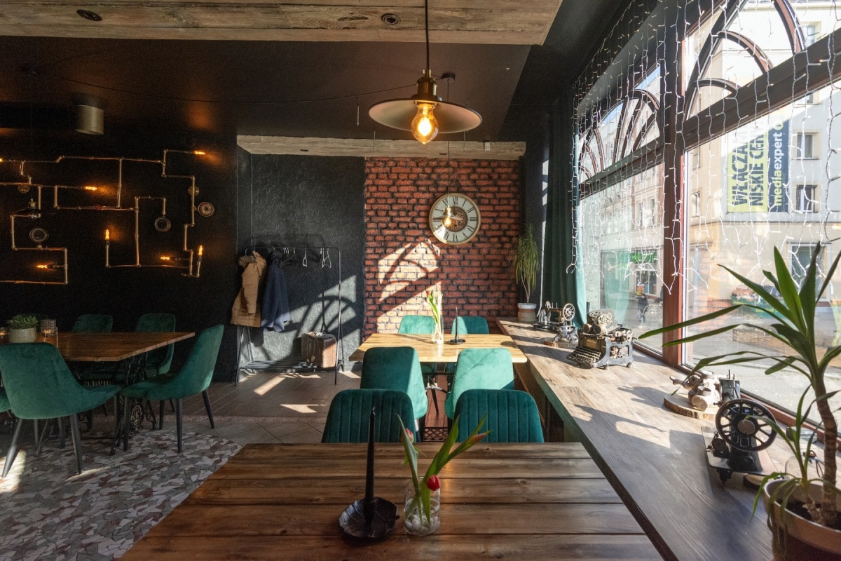Zanim do kawiarni zawitali goście, konieczny był generalny remont lokalu.  Właścicielki postawiły na eklektyczny steampunkowy wystrój z ciemnymi ścianami, drewnianymi blatami stołów osadzonymi na żeliwnych podstawach starych maszyn do szycia. Wzrok przyciągają głębokie kolory, wyraziste i dopracowane detale inspirowane techniką i steampunkowym designem, a wszystko to zaprojektowane i wykonane samodzielnie przez właścicielki.