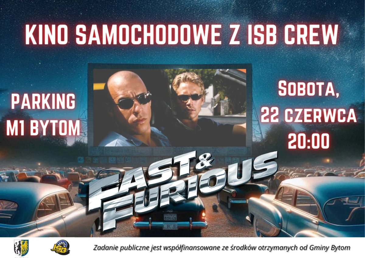 W sobotę, 22 czerwca odbędzie się Kino Samochodowe z ISB Crew na parkingu CH M1 w Bytomiu. Podczas tego wyjątkowego wydarzenia będzie można obejrzeć kultowy klasyk motoryzacyjnego kina – pierwszą część serii „Szybcy i Wściekli”. Wjazd na parking i ustawienie samochodu będzie możliwe od godziny 20:00, a seans rozpocznie się o 21:20 i potrwa do około północy.