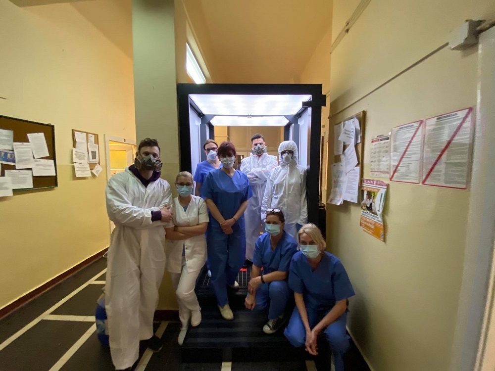 Wczoraj w nocy (15.04.2020) zespół pod kierunkiem dr inż. Magdaleny Bogackiej z Wydziału Inżynierii Środowiska i Energetyki Politechniki Śląskiej we współpracy z firmą WAAM zamontował bramę odkażającą w Szpitalu Specjalistycznym nr 1 w Bytomiu.
