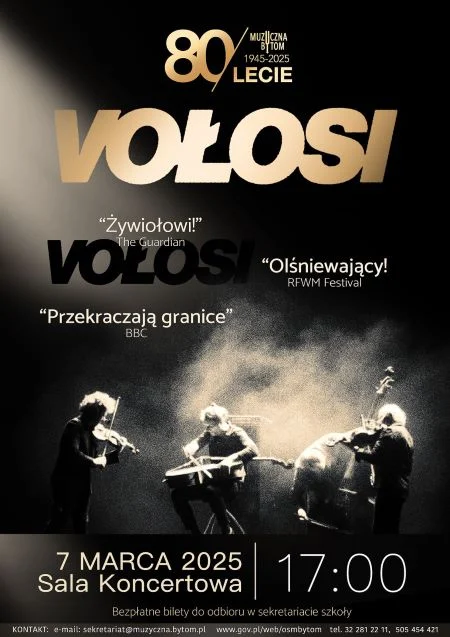 7 marca 2025 roku o godzinie 17:00 kwintet smyczkowy Vołosi zagra w Ogólnokształcącej Szkole Muzycznej, prezentując swoją unikalną twórczość, która łączy muzykę klasyczną z tradycyjnymi ludowymi brzmieniami Karpat.