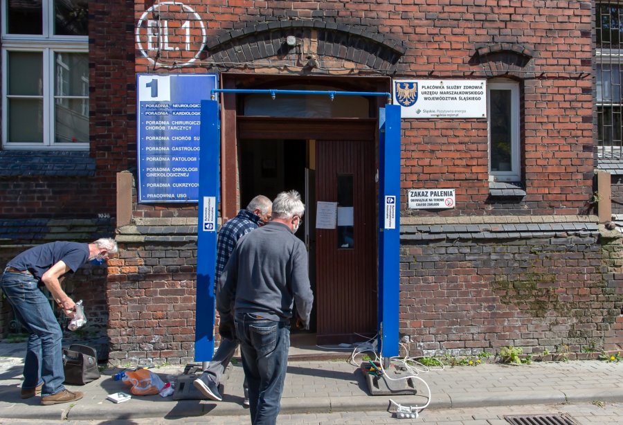 Kurtyny odkażające stanęły przed szpitalami w Bytomiu
