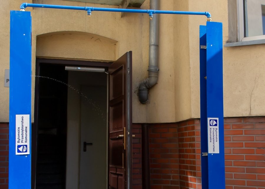 Ustawione w Szpitalu Specjalistycznym nr 1 przy ul. Prusa, na Oddziale obserwacyjno-zakaźnym przy alei Legionów 49 oraz w Szpitalu Specjalistycznym nr 2 przy Batorego bramy to przerobione kurtyny wodne, które w czasie upałów chłodziły bytomian. Pracownicy zwężyli kurtyny wodne z 2,5 do 1,30 metra, a instalacja przed wejściem do szpitala umożliwia każdej wchodzącej i wychodzącej osobie odkażenie odzieży.