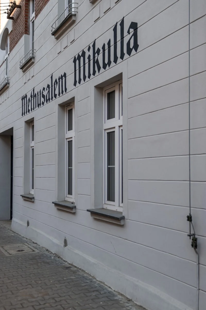 Przypomnijmy, że podczas robót budowlanych na przegrodzie frontowej w górnej części parteru odkryty został niemiecki szyld reklamowy Beerdigungs Institut Sarg-Lange Methusalem Mikulla (z niem. zakład pogrzebowy i produkcja trumien Mikulli Methusalema). Ponieważ napis ten nie był w najlepszym stanie, Bytomskie Mieszkania, posiłkując się dokumentami archiwalnymi i pomocą zaangażowanych mieszkańców miasta, zdecydowały o odtworzeniu fragmentu szyldu zachowując jego oryginalną czcionkę.