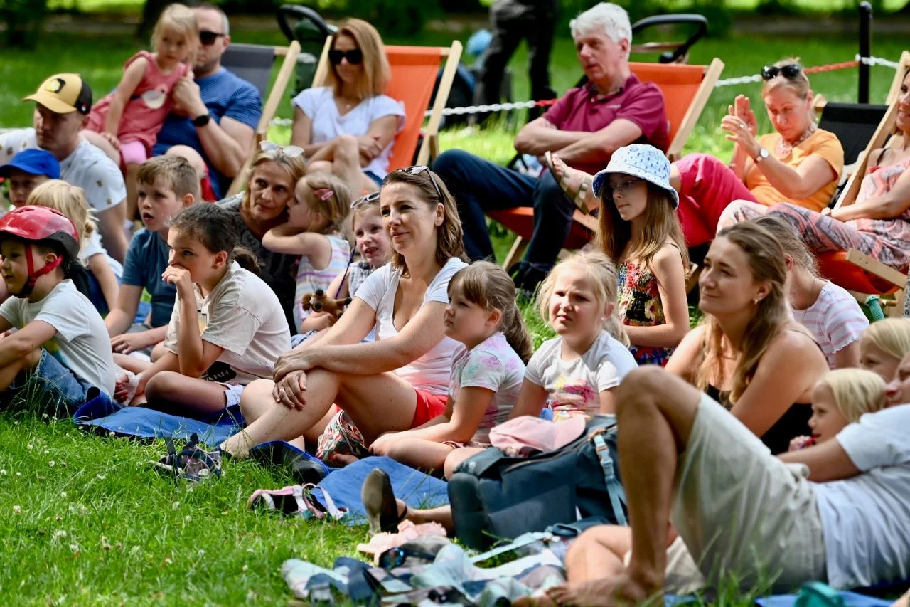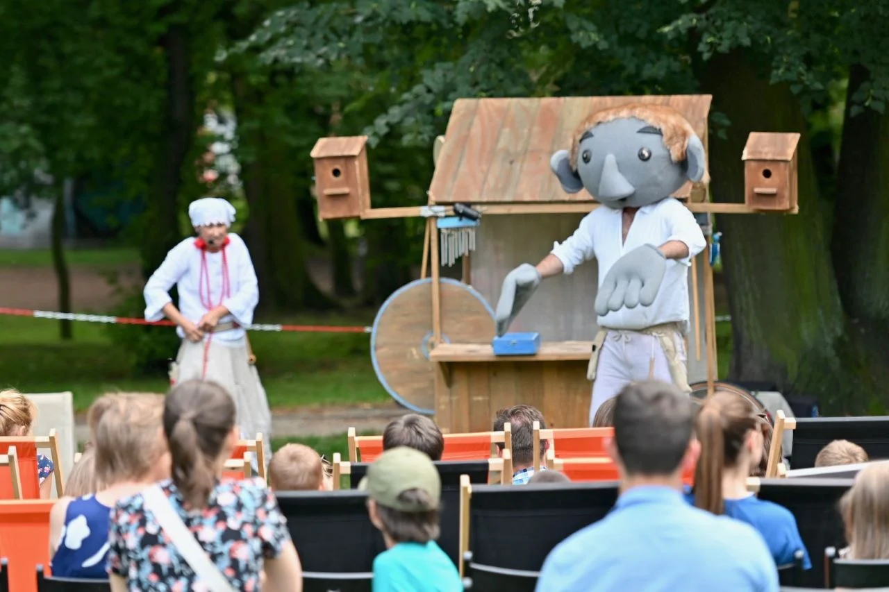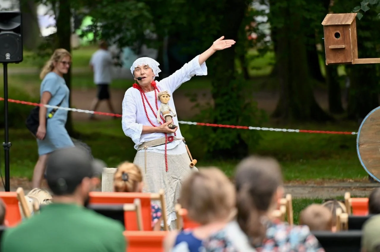 W niedzielę Park Miejski im. hm. Franciszka Kachla stał się areną magicznej teatralnej podróży, podczas której dzieci wraz z opiekunami wyruszyły w podróż do krainy Dawno, Dawno Temu za sprawą spektaklu „Fintikluszki – folkowe okruszki” w wykonaniu Wędrownego Teatru Lalek Małe Mi.