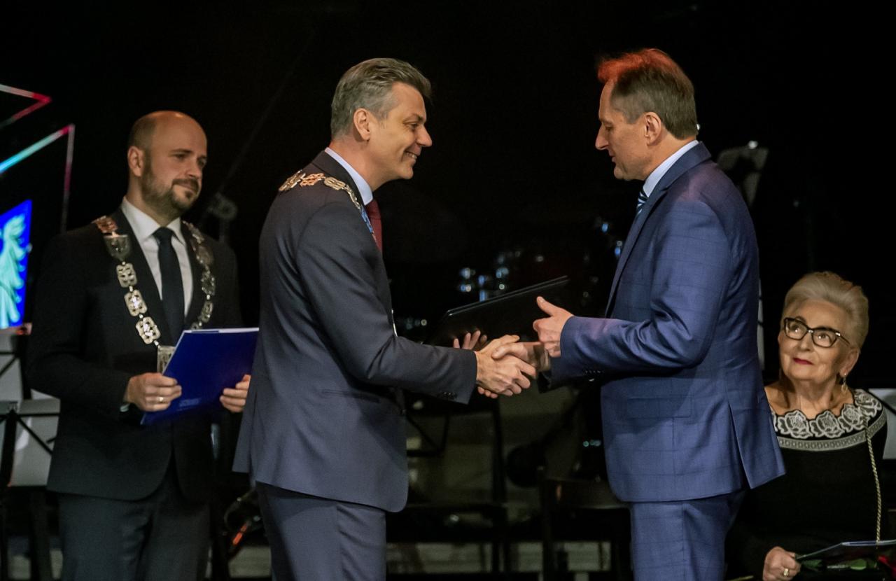 Tegorocznym laureatom zaszczytne wyróżnienia przekazali prezydent Mariusz Wołosz oraz przewodniczący Rady Miasta Michał Staniszewski.