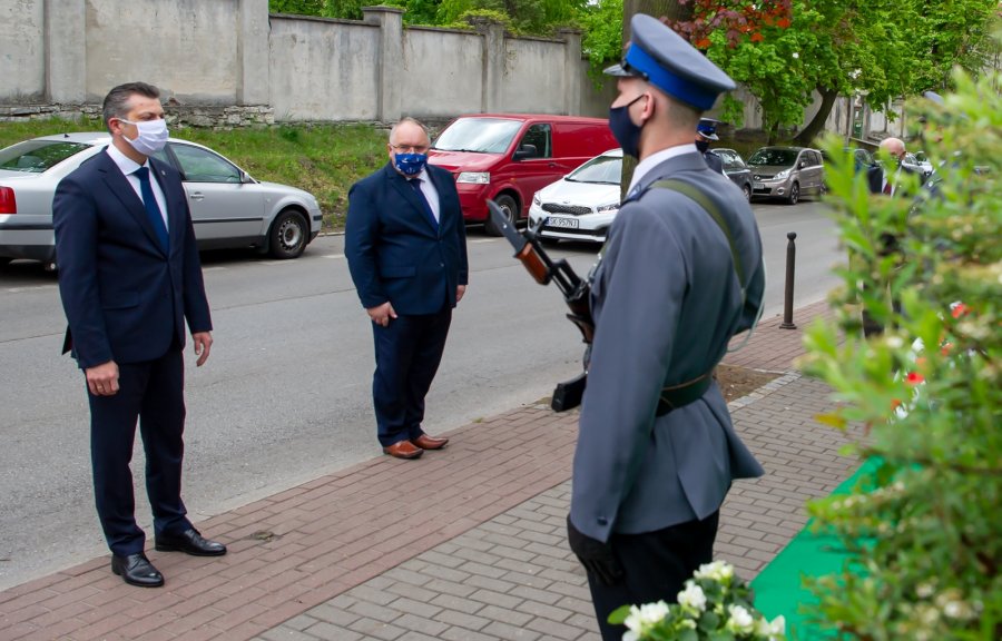 Jak co roku pod obeliskiem upamiętniającym śmierć bytomskiego policjanta stanęła warta honorowa, a kwiaty oraz znicze złożyli przedstawiciele Policji oraz władz miasta.