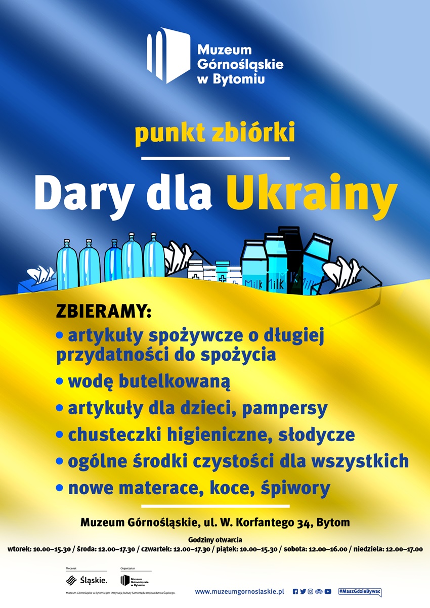 Muzeum Górnośląskie w Bytomiu jako instytucja społecznie odpowiedzialna aktywnie włącza się w działania na rzecz uchodźców z Ukrainy.