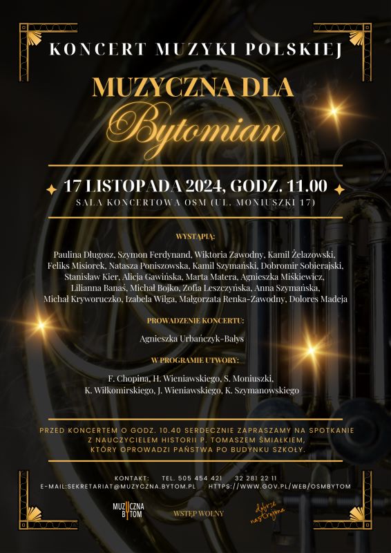 Uczniowie i nauczyciele Ogólnokształcącej Szkoły Muzycznej po raz kolejny zapraszają w swoje progi. Już w najbliższą niedzielę, 17 listopada, o 11.00, odbędzie się pierwszy koncert z cyklu Muzyczna dla Bytomian.