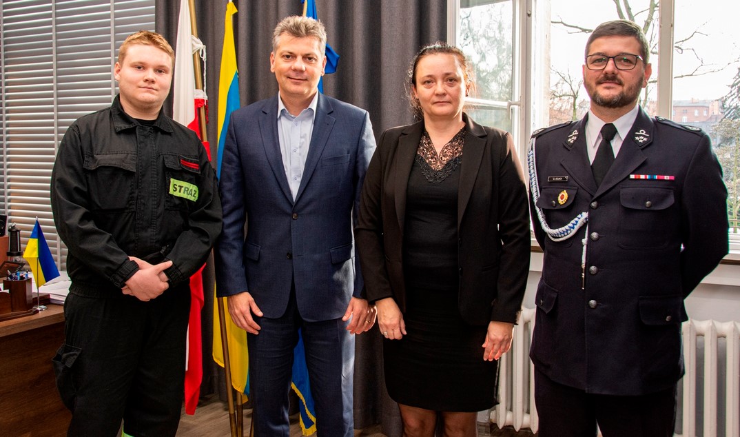 Paweł Wilk, uczeń II Liceum Ogólnokształcącego i strażak Młodzieżowej Drużyny Pożarniczej, uratował 55-letniego mężczyznę, który leżał na jezdni w Suchej Górze. W środę, 9 listopada prezydent Bytomia Mariusz Wołosz podziękował nastolatkowi za bohaterską postawę.
