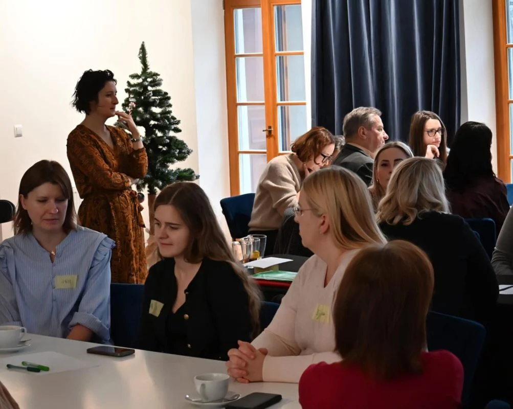 Podczas wtorkowego, 17 grudnia spotkania odbyło się szkolenie z zakresu neuroróżnorodności – część wykładową i warsztatową poprowadziła Olga Michalik, muzeolożka, historyczka sztuki, animatorka kultury, specjalistka ds. dostępności – adaptacji miejsc pracy, która zajmuje się szkoleniami i konsultuje z kadrą instytucji kultury tematy z zakresu zwiększania ich dostępności dla publiczności oraz realizacji działań w obszarze odpowiedzialności społecznej i środowiskowej.