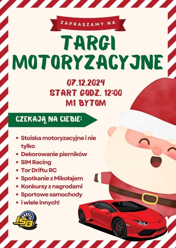 To będzie prawdziwa gratka dla fanów motoryzacji. W Centrum Handlowym M1 przy ul. Strzelców Bytomskich w sobotę, 7 grudnia od 12:00 do 20:00 odbędą się Mikołajkowe Targi Motoryzacyjne z ISB Crew.
