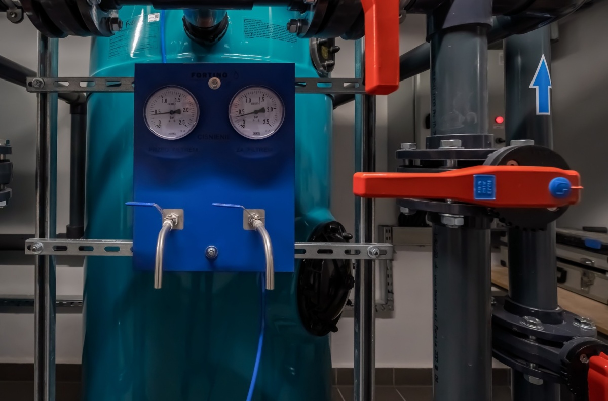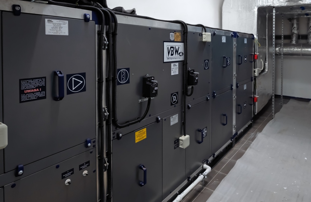 Wykonawca wykonał nową instalację hydrauliczną, wentylację mechaniczną z odzyskiem ciepła, wymienił stację uzdatniania wody basenowej oraz instalację elektryczną wraz z oświetleniem.