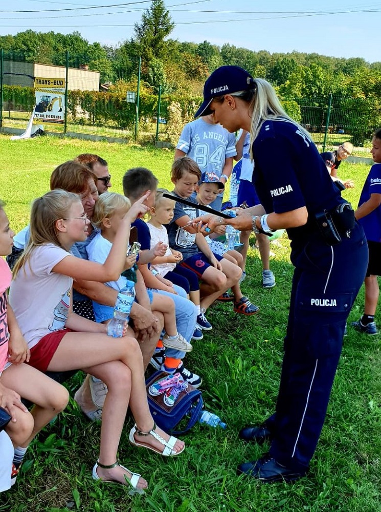 W ramach działań “Kręci mnie bezpieczeństwo…w wakacje” bytomscy policjanci spotkali się z dziećmi. Mundurowi odwiedzili najmłodszych na terenie stadionu Rodło Górniki, podczas zajęć organizowanych w ramach akcji “Lato w Mieście”. W trakcie spotkania policjanci poruszali tematykę związaną z bezpiecznym wypoczynkiem. Przypominali, jak bezpiecznie spędzić czas nad wodą, czy w miejscu zamieszkania. Mundurowi zwracali uwagę na konieczność prawidłowego zachowania się na drogach, zarówno przez pieszych, jak i rowerzystów. Apelowali o ostrożność podczas jazdy na rolkach, deskorolkach czy hulajnogach. Przekazali cenne rady i wskazówki, jak zachować się w sytuacjach zagrożenia i gdzie szukać pomocy.