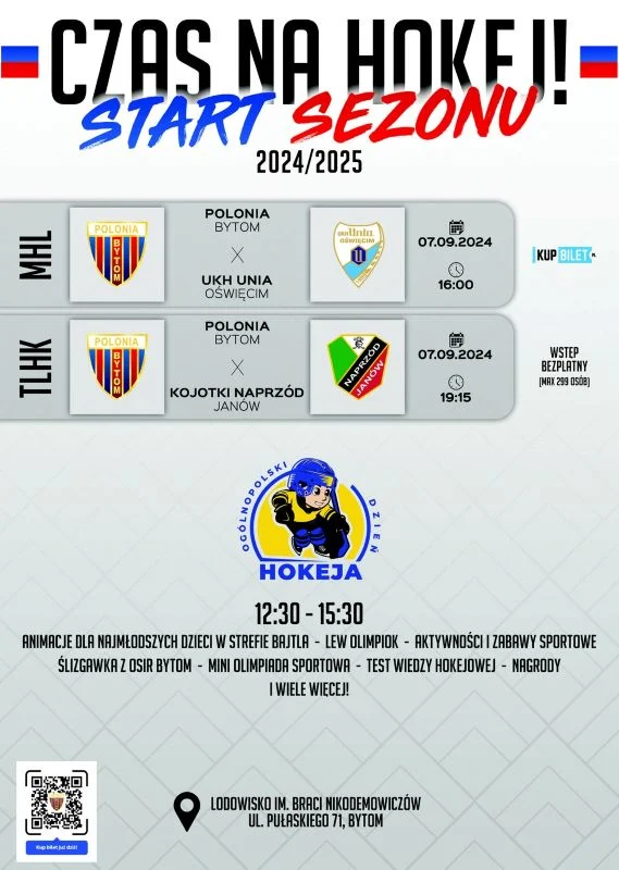 W sobotę 7 września podczas Ogólnopolskiego Dnia Hokeja w Bytomiu na Lodowisku im. Braci Nikodemowiczów hokeistki Polonii Bytom podejmą Kojotki Naprzód Janów, a hokeiści Polonii Bytom zmierzą się z drużyną UKH Unia Oświęcim. Oprócz ligowych meczów, Polonia Bytom przygotowała dla mieszkańców gry i zabawy, olimpiadę i test wiedzy sportowej. Przyszli hokeiści będą mogli skorzystać z możliwości przymierzenia sprzętu hokejowego oraz możliwości rozmowy z trenerami i zapisania się do Akademii Hokejowej BS Polonia Bytom.